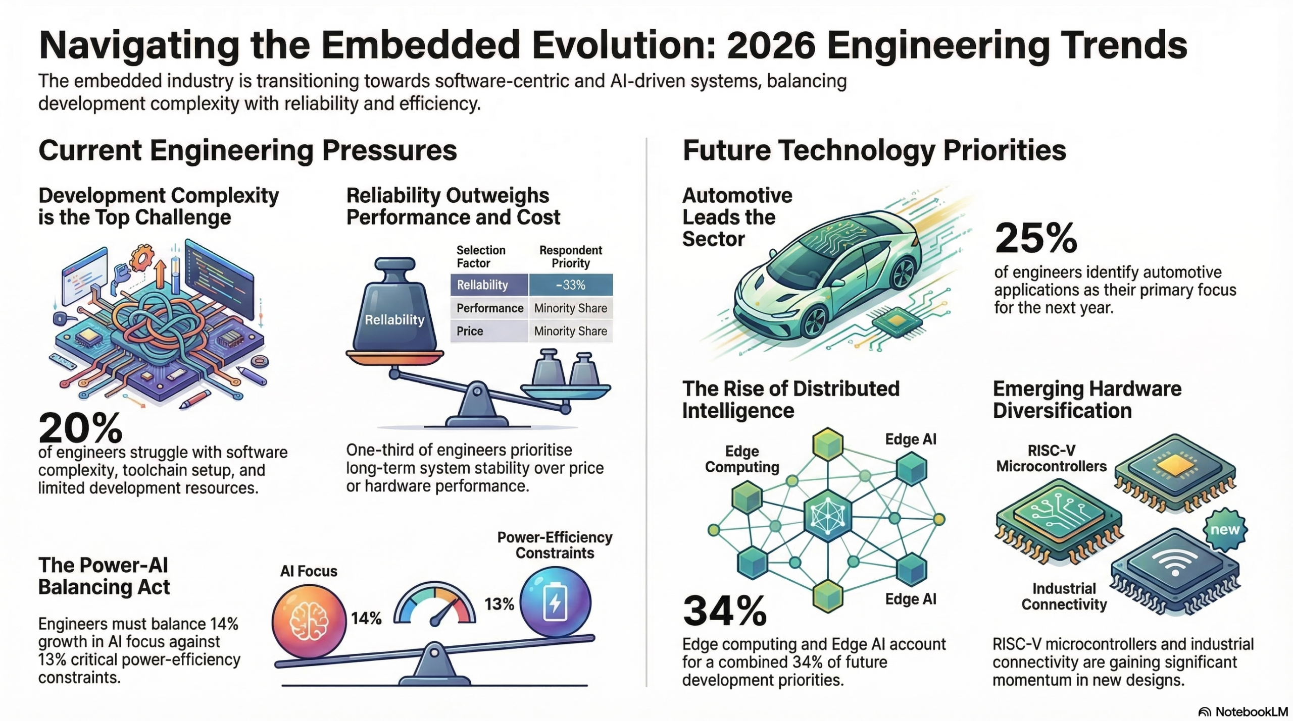 As embedded systems become more software-centric and AI-driven, engineers are facing increasing development complexity while continuing to prioritise reliability and power efficiency.