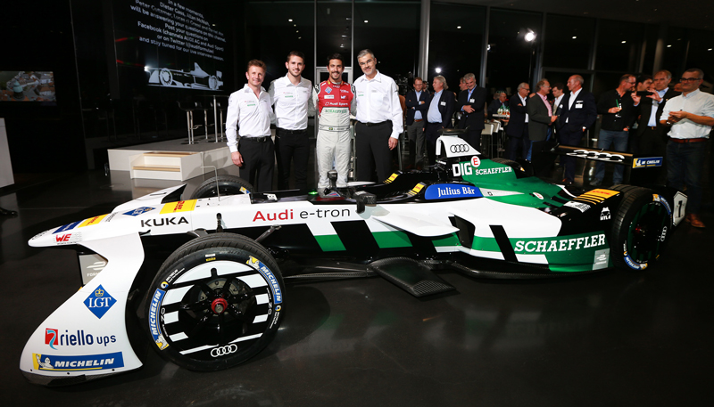 The new partnership agreement was signed by Dieter Gass, Head of Motorsport, AUDI AG, and the three managing directors of Würth Elektronik eiSos, Oliver Konz, Thomas Schrott and Alexander Gerfer on 27th September 2017 as part of the manufacturer’s exclusive team presentation of the first purely electric racing team in Neuburg.