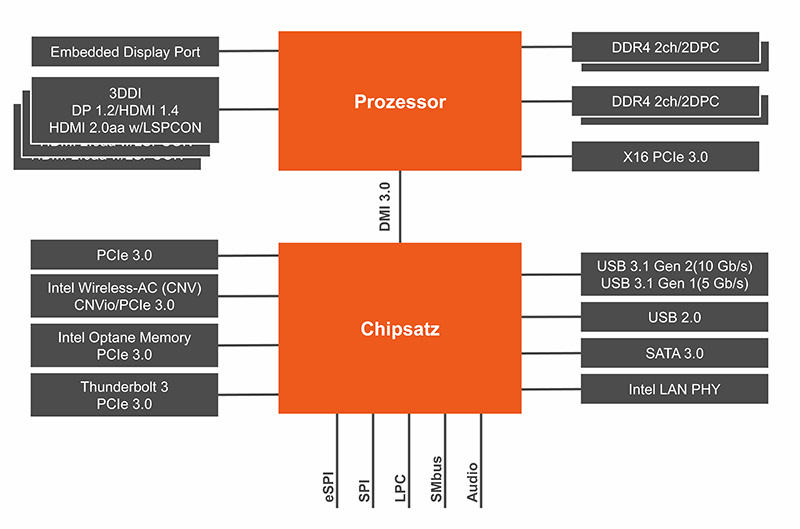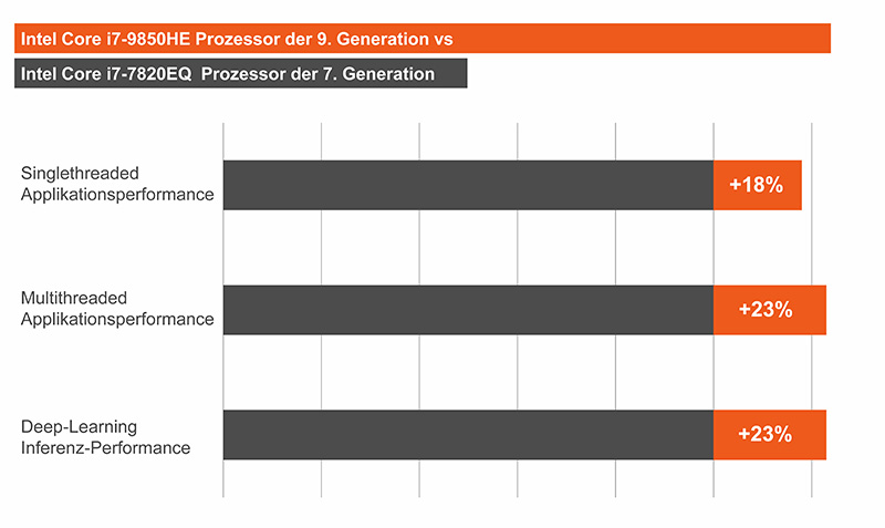 In view of all these heterogeneous requirements, it is very welcome that the new Intel microarchitecture offers a significant performance leap for a given TDP. The spearhead in terms of computing power is the 2.8GHz 6-core Intel Xeon E-2276ME processor with a TDP of 45W.