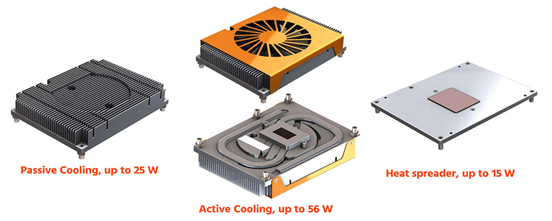 Even full-custom designs with cost-efficient COM and carrier fusion are possible. No matter which solution ultimately fits the application: All solutions are also available with suitable heat spreaders and cooling systems, which OEM customers can obtain from congatec from a single source – even including a standardised heatpipe adapter for fanless cooling of systems with high TDP.