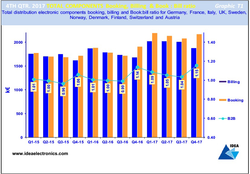 Adam Fletcher, Chairman of the IDEA commented: “IDEA believes that the European electronic components market will continue to grow in 2018 but probably at a slightly lower pace, with extended manufacturer lead times for all electronic components continuing into 2019.”