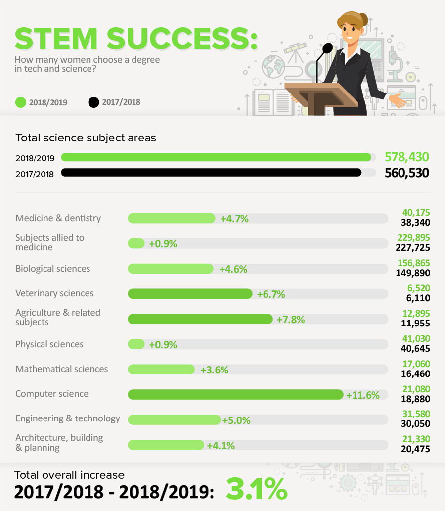 With that in mind, experts at Theknowledgeacademy.com sought to investigate the science degrees most sought after by women, and which degree has seen the highest increase over one year, by studying figures from HESA.