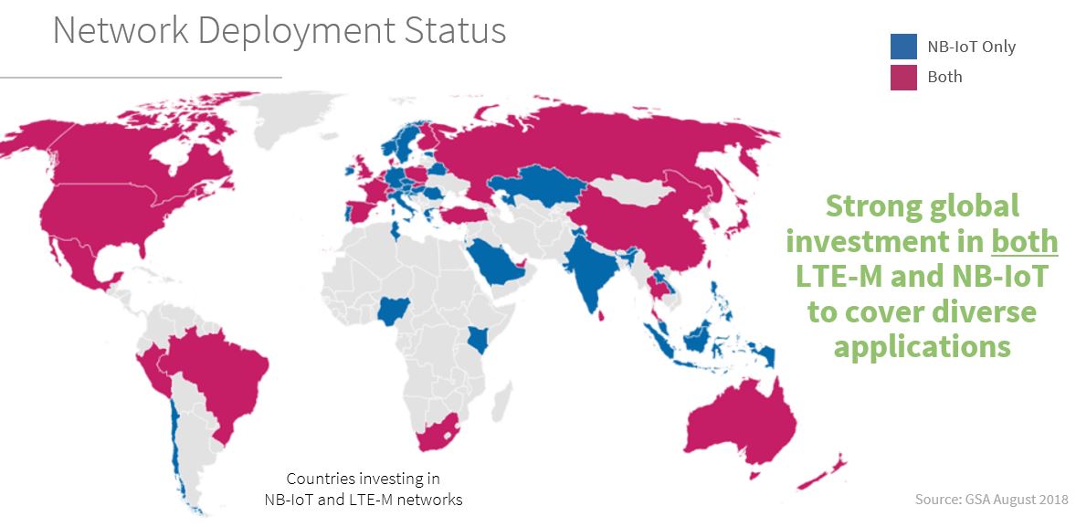 Another key reason for selecting both LTE-M and NB-IoT for its cellular modems is the strong worldwide investment in both of these technologies (see Figure 3).
