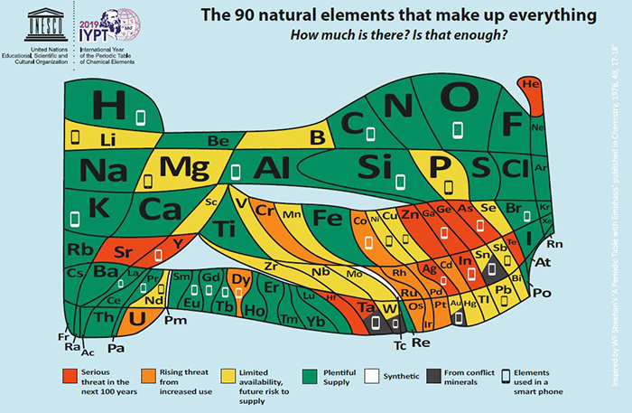 To raise awareness of this growing issue the European Chemical Society (EuChemS), representing more than 160,000 chemists, have redrawn the Periodic Table, which was revealed to the European Parliament on Tuesday, highlighting the chemical elements used in smartphones and the ones that are being significantly depleted as a result (its launch also coincides with the 150th anniversary of the Periodic Table). As such they have urged the public to change their phone only once every two years.