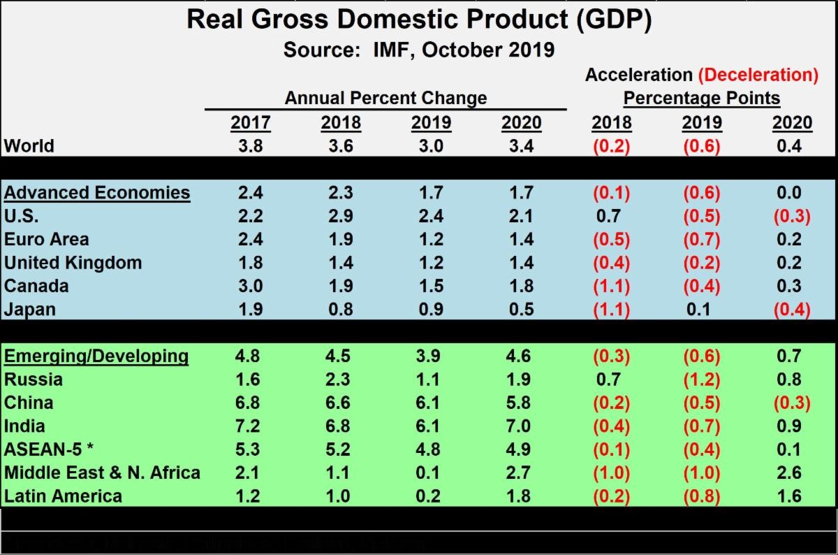 A moderate growth acceleration from the Euro area, United Kingdom and Canada will be offset by slowing growth in the US and Japan. Emerging and developing economies will drive stronger global growth in 2020. Although China growth will continue to slow, growth will accelerate in Russia, India and the ASEAN-5 (Indonesia, Malaysia, the Philippines, Thailand and Vietnam). The Middle East and Latin America are expected to rebound from near flat growth in 2019 to growth in the two percent to three percent range in 2020.