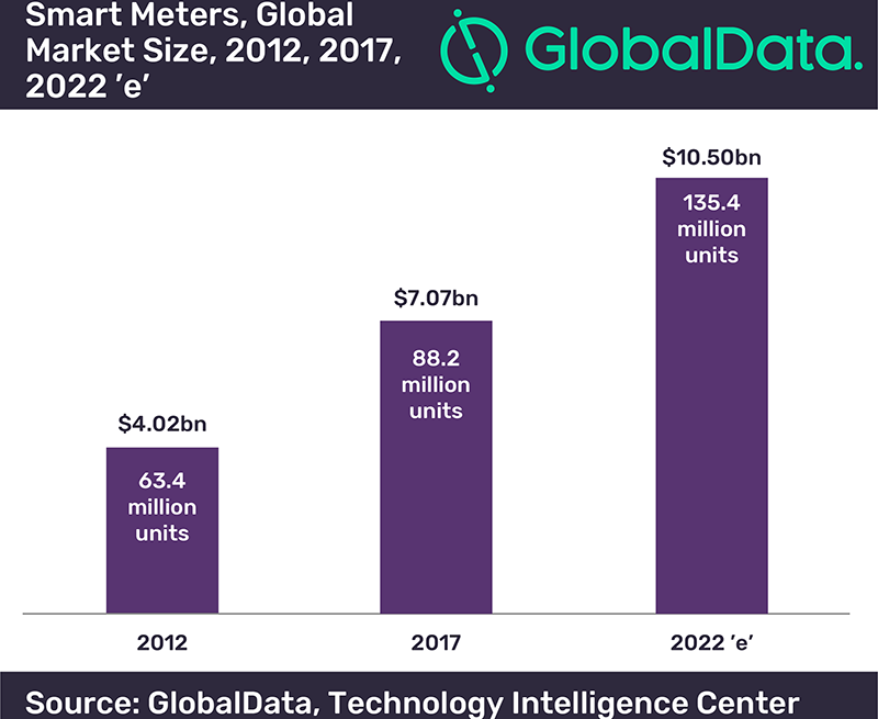 GlobalData’s latest report, ‘Smart Meters, Update 2018 – Global Market Size, Competitive Landscape, Key Country Analysis, and Forecast to 2022’ reveals that nearly 88.2 million installations took place in 2017 where global market value reached $7.1bn. Between 2012 and 2017 global market volume achieved a compound annual growth rate (CAGR) of 6.8% with value achieving double digit CAGR of 12%.