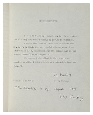 “From October 2017 onwards, all PhD students graduating from the University of Cambridge will be required to deposit an electronic copy of their doctoral work for future preservation. And like Professor Hawking, we hope that many students will also take the opportunity to freely distribute their work online by making their thesis Open Access. We would also invite former University alumni to consider making their theses Open Access, too.”