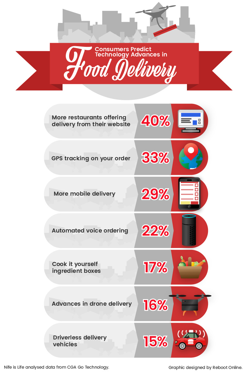 To investigate the sensation in more detail, online Italian food retailers, nifeislife.com analysed CGA’s report to discover the technology advances consumers predict they will see in the future of food delivery.