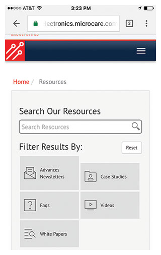 The new segment features videos, white papers and case studies which, taken together, provide a detailed overview of the advantages of the MicroCare products, the manner in which they work and the benefits they deliver. While the sites already included formal product information, these papers, newsletters and powerpoint packages help customers digest the technical data in broader, less formal manner. Importantly, the site automatically re-sizes images and reformats pages to fit the viewing device: desktop, tablet or smart phone.