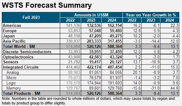 Exceeding the spring projections with slightly better Q2 and Q3 results, WSTS has revised its forecast, anticipating a single-digit contraction in the global semiconductor market of 9.4% in 2023. However, this is anticipated to be followed by a robust recovery, with an estimated growth of 13.1% in 2024.