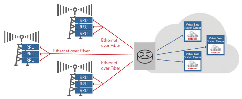 In a vRAN architecture, the Baseband Units (BBUs) are virtualised, rather than being located at the cell site as physical equipment. The virtual BBUs are deployed on NFV infrastructure software platforms like Wind River Titanium Cloud, running on industry-standard x86 servers and consolidated in centralised data centres, while the Remote Radio Units (RRUs) remain at the cell sites at the edge of the network. vRAN leverages standard server hardware that cost-effectively scales up or down processor, memory and I/O resources based on dynamic changes in demand, infusing the RAN with capacity for application intelligence, which significantly improves service quality and reliability. In many configurations, the architecture also allows for Ethernet and IP fronthaul transport, which gives services providers more cost-effective options for RRU connections.