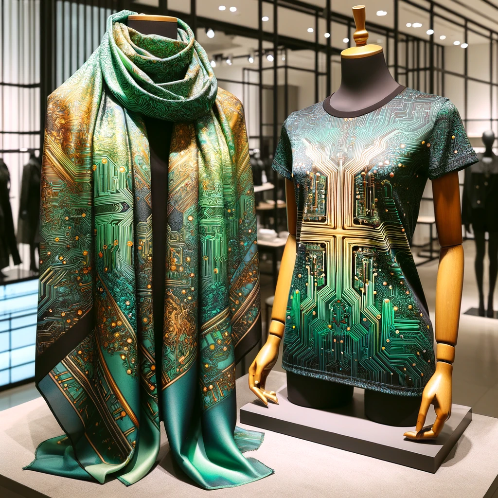 Fashion meets function with a scarf designed with a circuit board print. It’s a stylish and subtle nod to her passion for engineering, suitable for both casual and professional settings.
