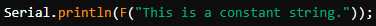 Use the F() macro to store constant strings in Flash memory (PROGMEM) rather than SRAM. For example: