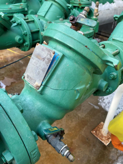 Consider also these tools operate in cleanrooms at temperatures in a range of +/- one degree. A long period of exposure to uncontrolled environmental conditions, including a record low temperature well below the cleanroom target temperature, caused the kind of major damage you can see in the photograph below:
