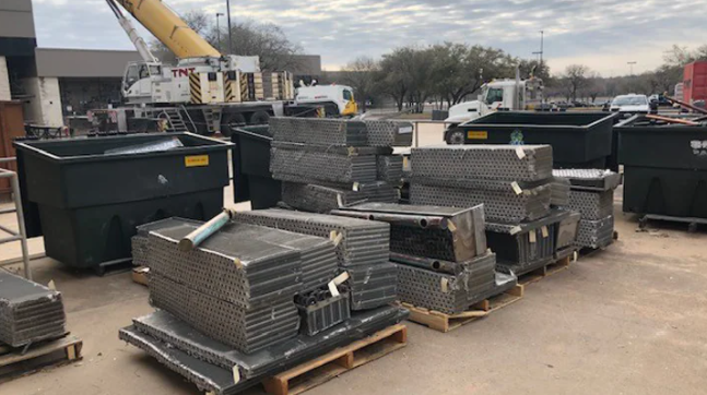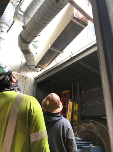 Our teams developed solutions quickly to meet these challenges. A case in point is the replacement of damaged air handler units. As shown in the images below, we had to physically cut out the damaged units, remove a piece of the roof, and using a crane brought on site for this purpose, remove multiple 1,000 lb. units through the holes we just made. All of this with a tolerance of less than 12 inches, making this major mechanical replacement a high-risk endeavor for the team.