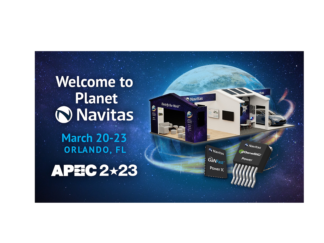 “APEC is a significant event in the power industry calendar, with an intense schedule of customer discussions on new technologies and systems,” said Mr. Kinzer. “Complementary GaNFast and GeneSiC portfolios, with comprehensive, application-specific system design support accelerates customer time-to-market with sustainable performance advantages. ‘Planet Navitas’ represents the very real, inspiring implementation of GaN & SiC across the vast $22bn a year market opportunity.”