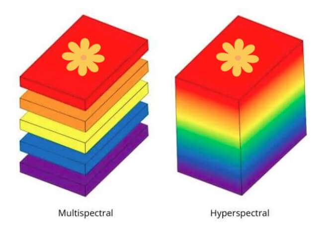 In hyperspectral imaging, the hyperspectral remote sensors collect images in thousands of narrow and closely spaced contiguous spectral bands. These bands provide a very detailed picture of the light spectrum. This makes it possible to identify even subtle variations in colour with high detailing.