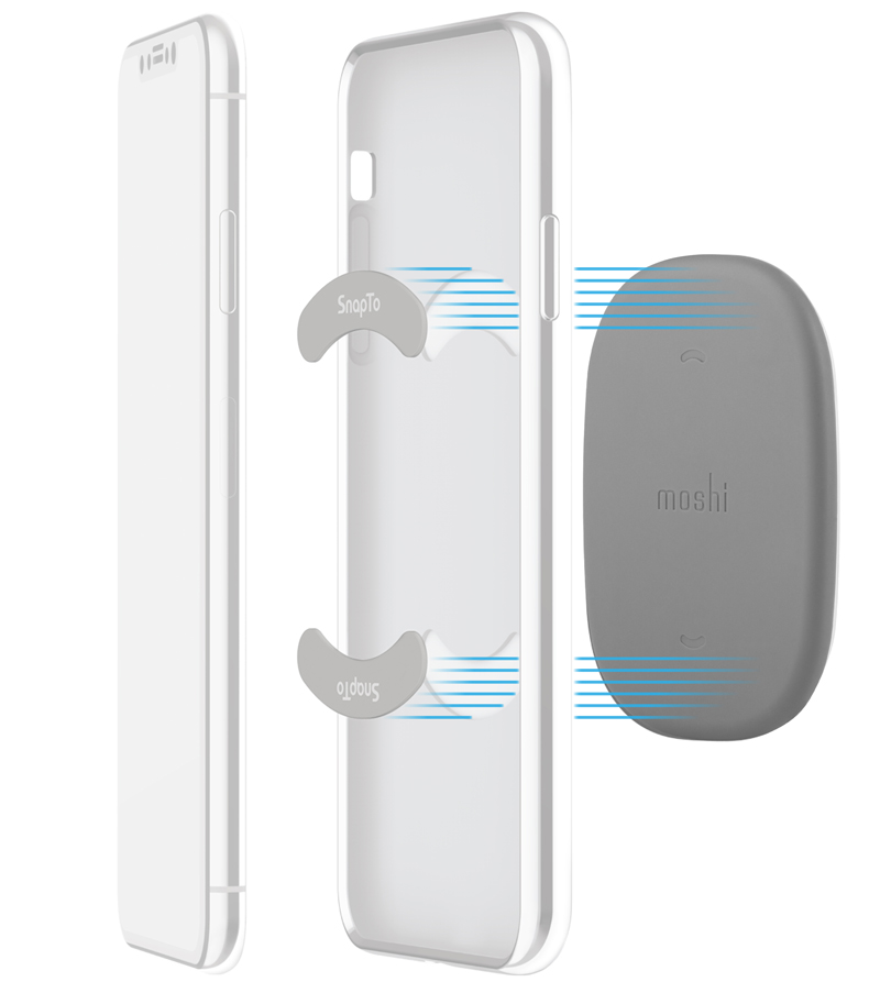 Moshi SnapTo Magnetic Wall Mount with Wireless Charging for iPhone 8 upwards