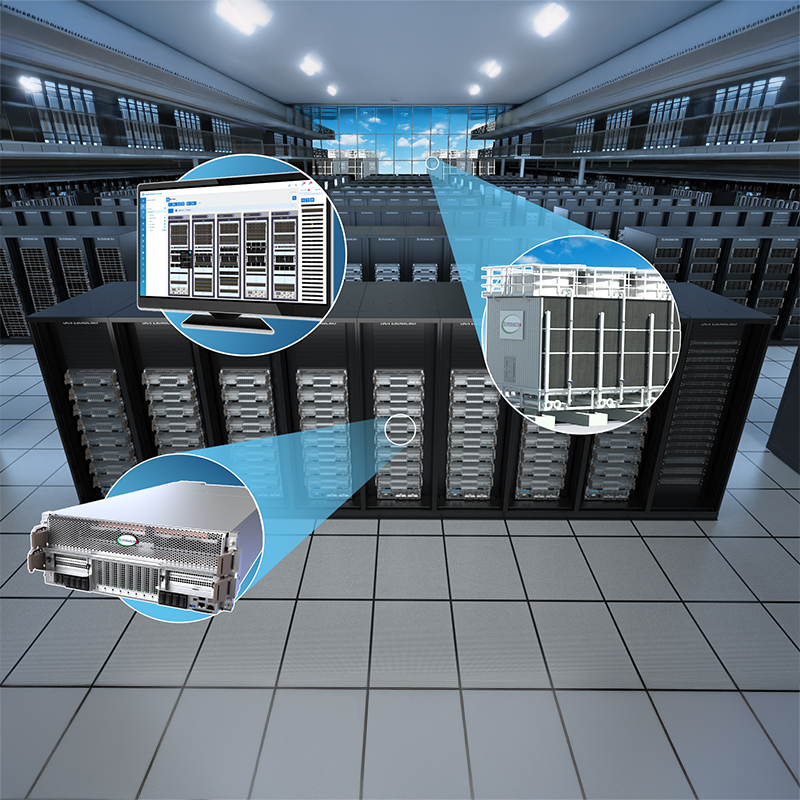 The efficient liquid circulation and nearly full liquid-cooling heat capture coverage, at up to 98% per server rack, allow for an increase in the inlet liquid temperature at up to 45°C. The higher inlet temperature eliminates the need for chilled water, chiller compressor equipment cost, and additional power usage, saving up to 40% of data centre water consumption.