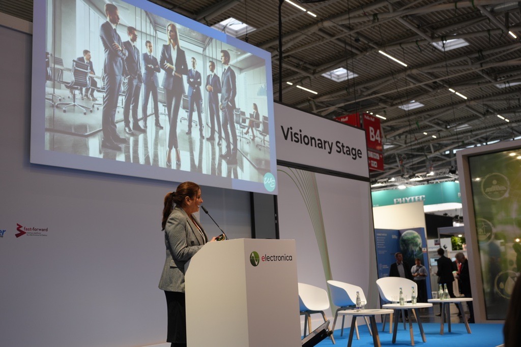 Another point raised during her keynote was the need for women to support each other in leadership, citing Women in Electronics’ own research showing that women are sometimes held back by a lack of peer support.
