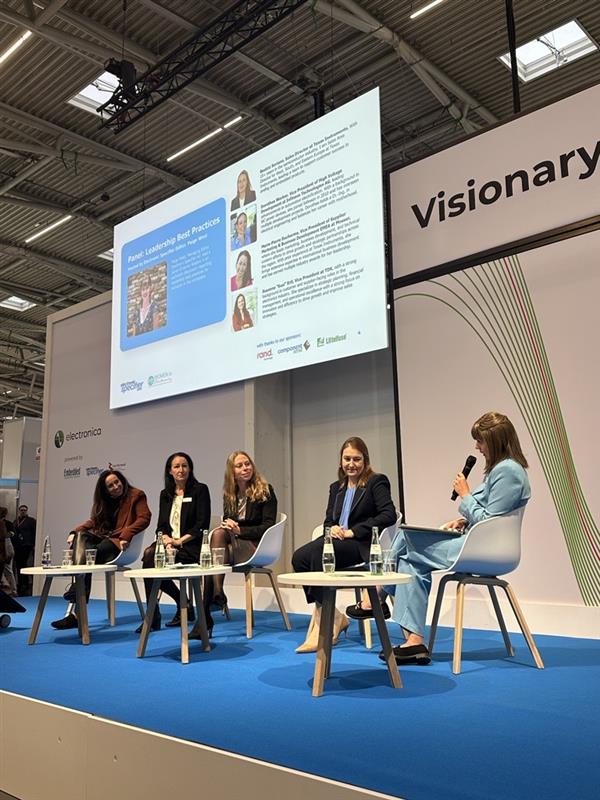 Following on from the keynote was a insightful and relatable panel discussion where Paige spoke to Beatriz Soriano, Sales Director, Texas Instruments, Dorothea Werber, Vice President, High Voltage Development Department at the Automotive Division, Infineon Technologies, Marie-Pierre Ducharme, Vice President of Supplier Marketing and Business Development, EMEA, Mouser Electronics, and Susanne Ertl, Vice President Sales Distribution Europe, TDK, about real experiences in the industry and offered advice. The panel covered career progression, self-advocacy, and breaking misconceptions about women in leadership.
