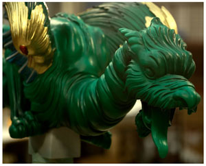 In the terms of the Kew dragons, these features suited both the functionality requirement of installation as well as the cosmetic requirements of the historic restoration. Finally to finish off the dragons, 3D Systems’ skilled artisans actually hand-painted each 3D dragon individually, they started with the base layer as green all over.