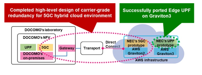 DOCOMO and NEC also successfully onboarded NEC’s 5G User Plane Function1 software dedicated to edge computing (Edge UPF) on the AWS Graviton32 processor. The verification is expected to support the faster construction and reduced energy consumption of 5GCs and Edge UPFs for IoT use cases.
