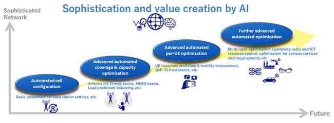 RIC reduces RAN operating costs by automatically configuring base stations and optimising radio parameters leveraging AI. Near-RT RIC enables advanced control for Quality of Service (QoS) in near real-time on a per-user basis, and in conjunction with Service Management and Orchestration (SMO)/ Non-Real-Time RIC, achieves an optimal balance between RAN operating costs and QoS/ Quality of Experience (QoE). The entire vRAN system will be optimized for various services and requirements in the future by coordinating the control of radio resources and computing resources through RIC.