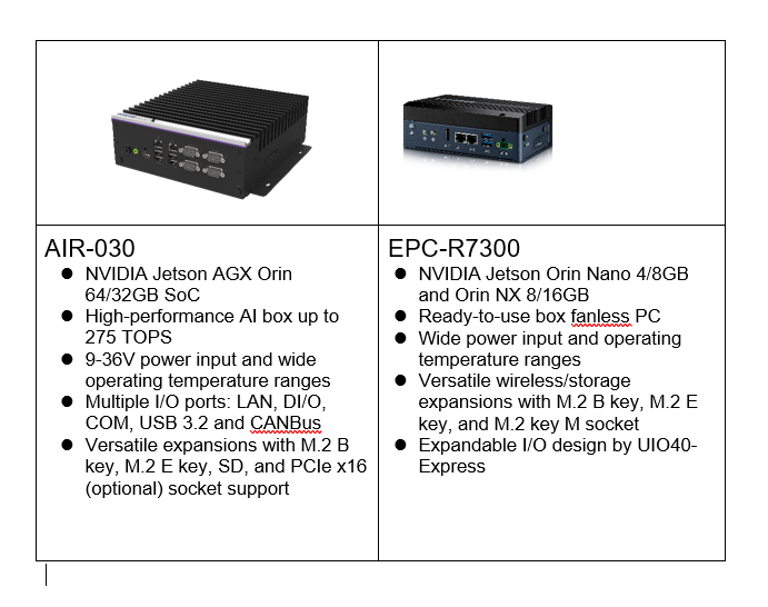 TheAIR-030’s early samples will be ready in November, while theEPC-R7300 series will be available for order in December, 2022 (Orin NX) and in January, 2023 (Orin Nano). For more information, please contact your local sales team or visit the Advantech website.