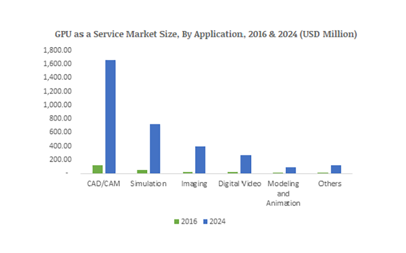 The latest trend proliferating GPU as a service industry is the growing utilisation of 3D graphics in the expanding iOS and Android mobile applications. Undeniably, 3D gameplay, UI, and visual captive content are mandatorily being implemented in every mobile operating system. Each one of these implementations demands the deployment of a graphics card for improved functionality, which would commendably impact GPU as a service market share. Effectively, the escalating usage of 3D graphics in mobile devices and the development of fancy UIs incorporating 3D graphics will stimulate GPU as a service market size, forecast to cross a revenue of $5bn by 2024.