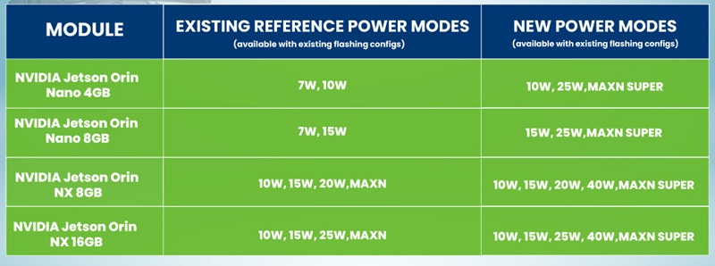Figure 1: New reference power modes on Jetson Orin Nano and Jetson Orin NX SoM (Source – NVIDIA)
