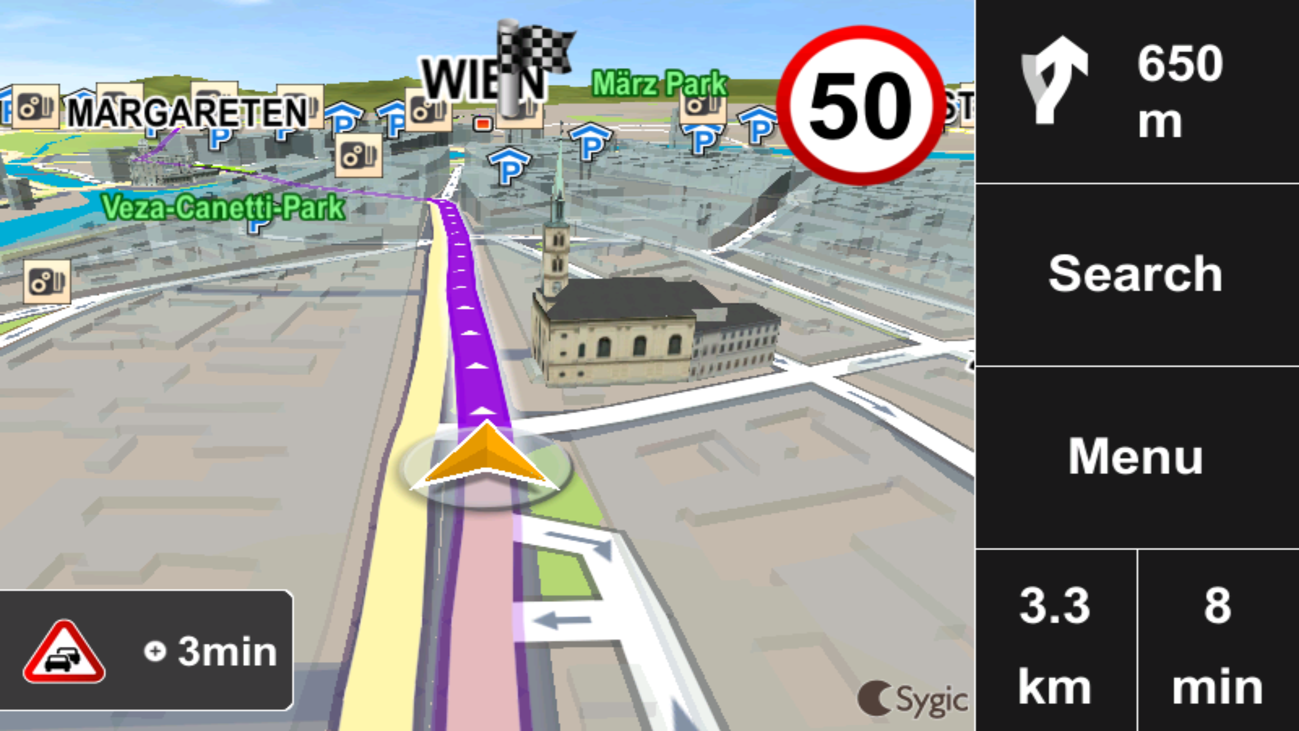 Prices for two hours parking in London’s capital can cost up to 42€, but street spaces are 5.50€. Through suggesting availability and prices, Sygic’s Car Navigation feature offers money-saving alternatives.