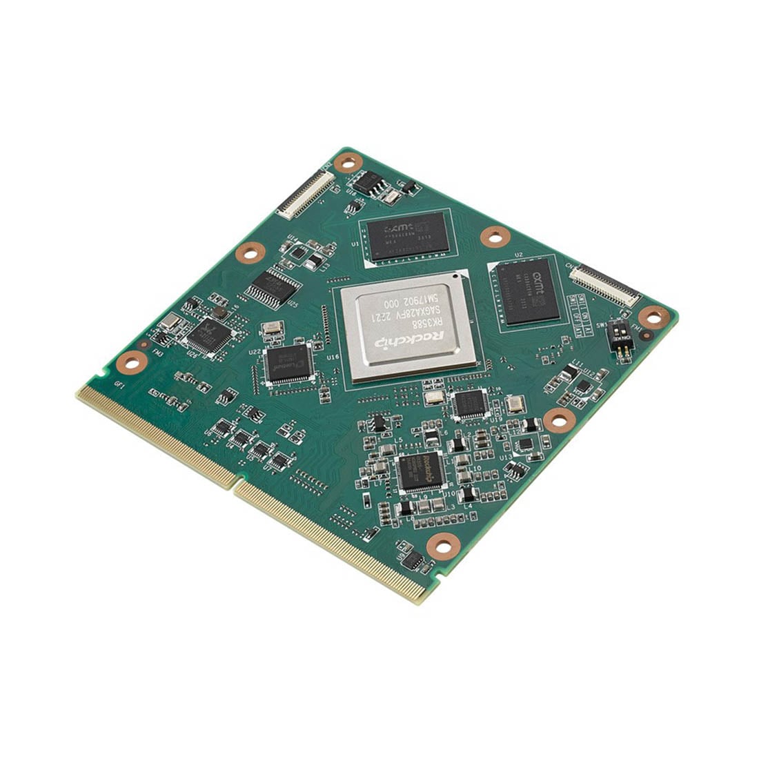 The ROM-6881 is powered by the Rockchip flagship processor RK3588. It features a robust configuration with a total of eight processing cores (4 x Arm Cortex-A76 and 4 x Arm Cortex-A55) that can reach speeds of up to 2.4GHz. All eight cores are built using an advanced 8nm process, providing a 300% increase in performance over the previous RK3399 processor. This ensures optimal computing power tailored for platform management and a diverse range of feature-rich applications. Specifically designed for Edge AI applications, the RK3588 integrates a 6-TOPs NPU accelerator, giving it impressive AI computing capabilities. This versatility simplifies various Edge AI inference tasks, ensuring optimal performance and flexibility for a wide array of applications.