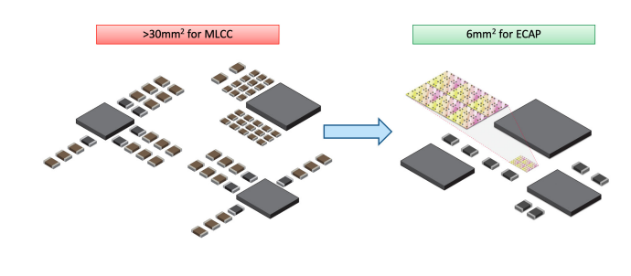 This goes beyond replacing one-for-one, says Shultis. “You can consolidate the entire network [of decoupling capacitors] onto a single die with multiple connectors. The significant consolidation of the space and the size is there. This technology is absolutely ideal for saving space in high performance applications.” This offers a design advantage in, for example, data centres, where there are large decoupling networks for the power management performance.