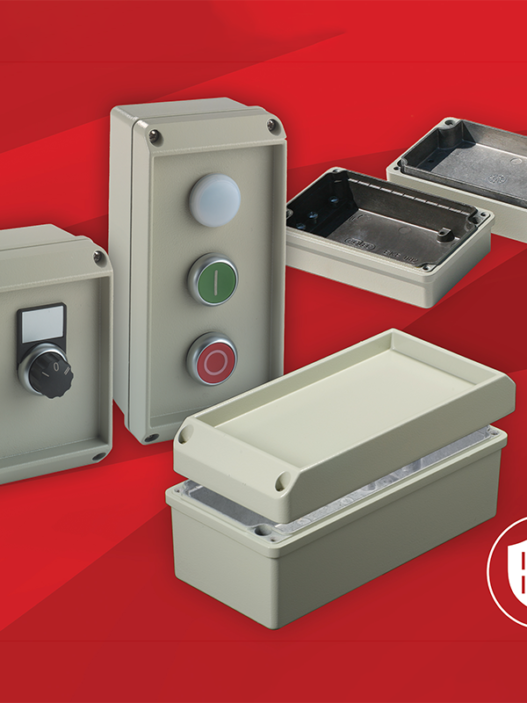 The enclosures are available in four sizes: 82 x 51 x 14mm to 150 x 92 x 28mm. The standard colours are off-white (RAL 9002) or lava ABS (UL 94 HB), or in black (RAL 9005) infrared-transparent PMMA (UL 94 HB).