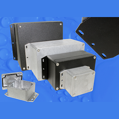Depending on the size, the lid is secured to the base with either two, four or six stainless steel Philips machine screws located outside the gasketed area, which gives repeated access without degrading the environmental protection. They are available in a natural finish or with a tough polyester black powder finish to both the outside and inside of the enclosure. Clear areas in the painted versions are provided around the grounding points.