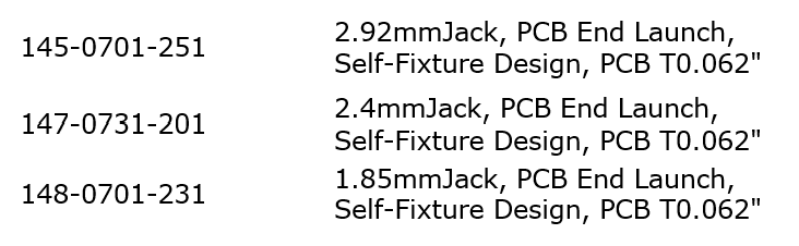 These coax connectors use a proprietary design to accurately align and hold the center contact to the circuit board plane with connector legs that tightly grip the standard 0.062” mil thick boards until the soldering operation is complete. The new self-fixture parts allow for ease of attaching connectors directly to coplanar waveguide circuit boards and operate with exceptional return loss characteristics, up to 67GHz.