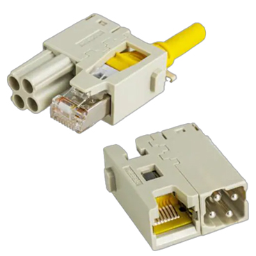 The Han-Modular Domino RJ45 modules feature >500 mating cycles, 0.8kV rated impulse voltage, increased connector density, and universal patch cable fixing.