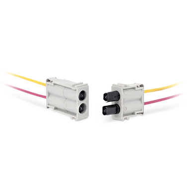 The NET-AX+ modular hybrid connector system supports high-speed differential and coaxial data transmission as well as signal and power connections within a single connector assembly.