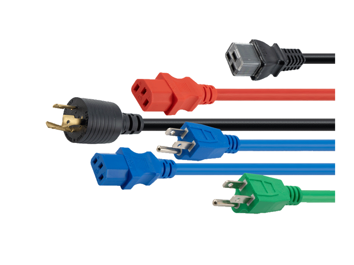 The cords have features to make installations more functional, such as twist-lock connectors, right-angle connectors, and splitter cords.