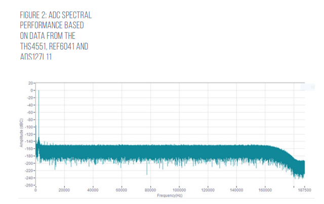 Contributing noise sources can limit measurement resolution in a data acquisition system (from the reference voltage and input signal conditioning circuit). Arguably, the primary factor of system resolution for any industrial equipment measuring AC signals, such as vibration/acoustic monitoring and general purpose data acquisition, is the converter. It should be free of tones and other spurious frequencies that limit measurement resolution, with low broadband noise to resolve small signal levels and low distortion for good spectral performance (Figure 2).