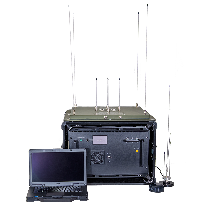 HUGIN 304DF mobile EW/SIGINT system comes in an environmental box and can be deployed in any moving vehicle with a ground plane for the direction finder antenna and 12V DC power.
