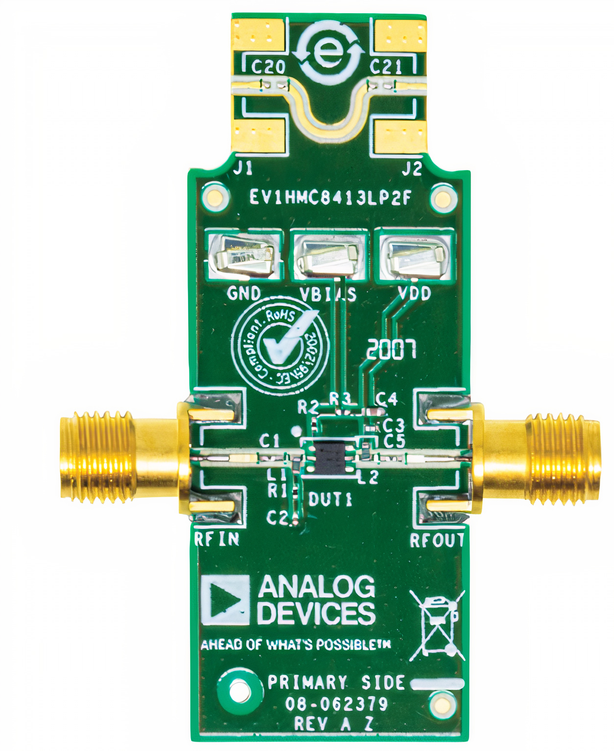 Figure 7: The Analog Devices EV1HMC8413 RF amplifier evaluation board. (Source: Analog Devices)
