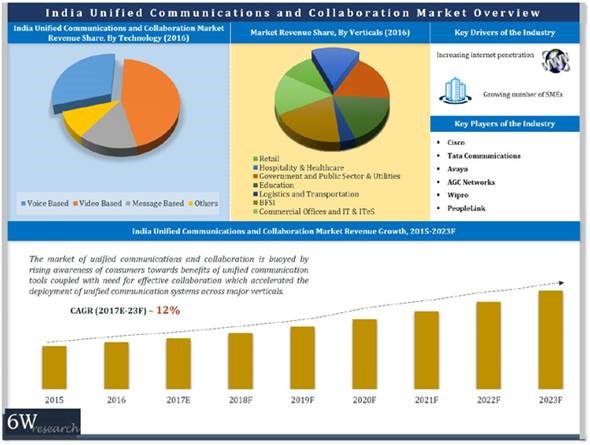 Unified communications (which primarily include voice, video and messaging based communications) and collaboration market in India is registering healthy growth year-over-year. India unified communications and collaboration market is buoyed by several factors such as growing demand for better communication models, increasing penetration of internet and growing awareness among several end user industries. Growth in Small and Medium Enterprises (SMEs) and demand from various verticals are also driving the growth of the market.