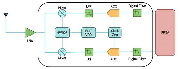 In contrast, direct conversion (zero-IF) architectures reduce both the filtering requirements and the need for very high-bandwidth analog-to-digital converters (ADCs), resulting in a simpler design that can be implemented on a single chip (Figure 2).