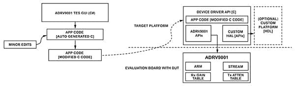 In turn, the TES tool autogenerates C# code that can be compiled to the Linux environment, MATLAB environment, or Python. The SDK provides a complete set of software libraries and application programming interfaces (APIs), including the ADRV9001 API package developed for the AMD ZCU102 platform.