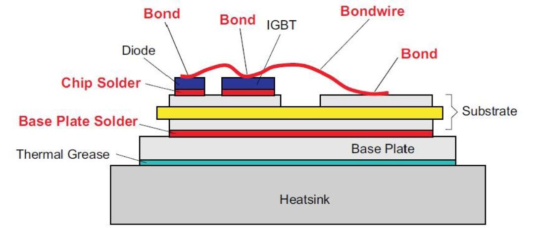 IGBTs are widely used in power electronics and provide a good example for understanding the effects of pump-out. They consist of a thermal stack, which includes materials of differing thermal expansion coefficients (CTEs) and a variety of bulk thermal conductivities, leading to temperature gradients throughout the IGBT.