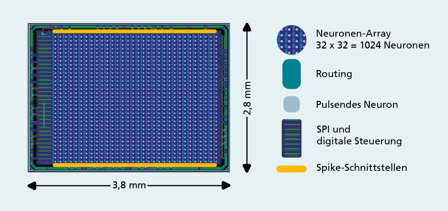 The inference accelerator for spiking neural networks SENNA is inspired by the functioning of the brain, consists of artificial neurons, and can process electrical impulses (spikes) directly. Its speed, energy efficiency, and compact design make it possible to use SNNs directly where the data is generated: in devices at the Edge.