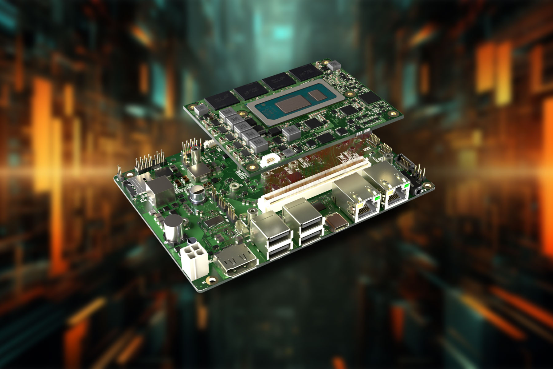 A change in the COM-HPC design principles has an impact on the overall height of the module and heat spreader, reduced by 5mm for COM-HPC Mini designs. As a result, the minimum installation height required is now just 19mm instead of the 24mm normally required from the top of the carrier board under the other COM-HPC specifications. This makes very slim designs possible, of the kind required for mobile hand-held devices or panel PCs. To meet the height limits, COM-HPC Mini modules have soldered memories in all cases. This makes COM-HPC Mini modules inherently rugged, as soldered memories provide not only greater resistance to shock and vibration but efficient cooling as well through direct thermal coupling to heat spreaders.