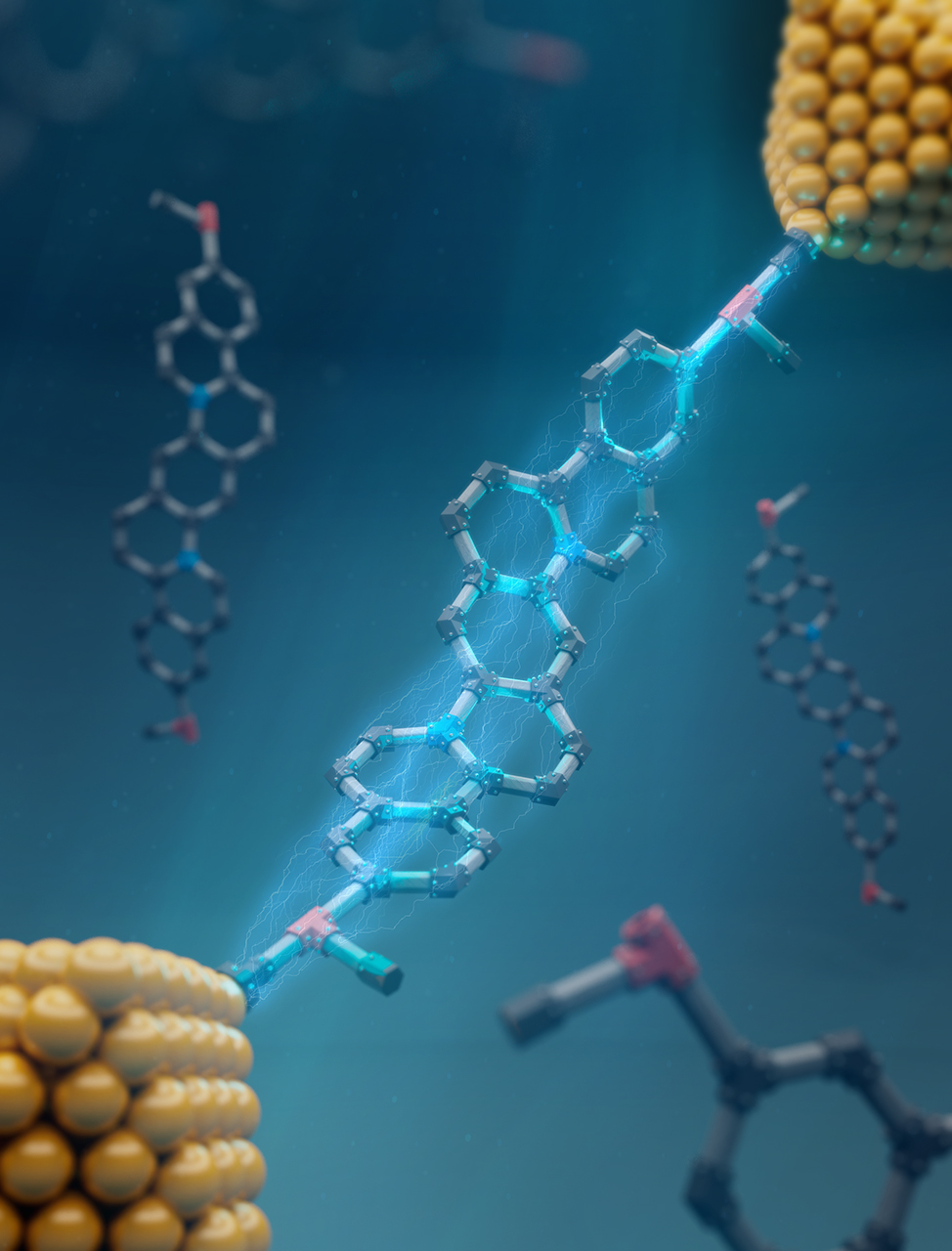 Schroeder explained the significance of molecular rigidity in electronics: “In the field of molecular electronics, you have to consider the flexibility and motion of the molecules and how that affects the functional properties. And it turns out that plays a significant role in the electronic properties of molecules. To overcome this challenge and achieve constant conductivity regardless of the conformation, our solution was to prepare molecules with rigid backbones.”